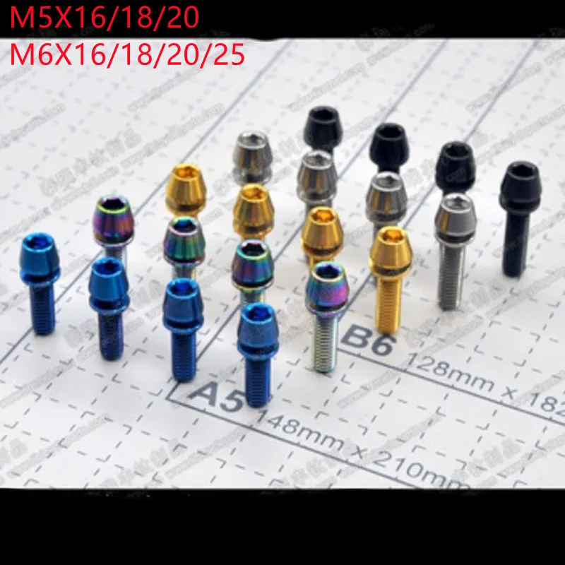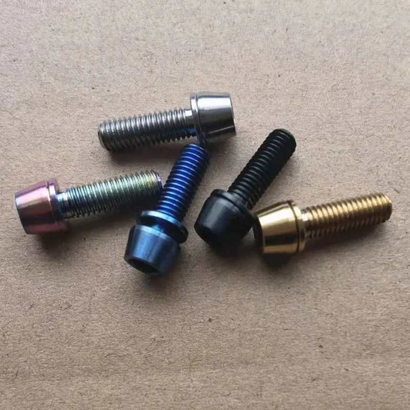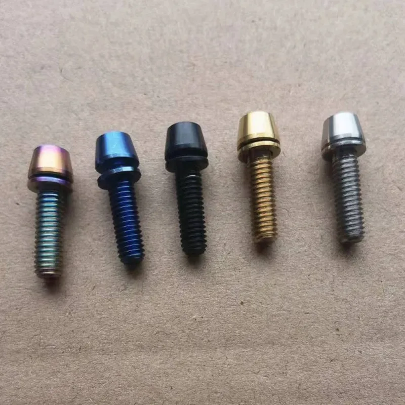 2/ 6/ 12/ 24pcs Titanium Bolt M5X16 M5X18 M5X20mm Cone Head with Gasket Washer Bicycle Stem Screws Titanium Stem Bolts